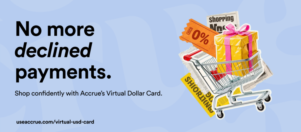 Ok…you have decided to spend on Valentine’s Day. Accrue’s Virtual Dollar Card has your back. If you’re ordering that curated gift box from Instagram, paying for flowers on an international website, or booking a surprise experience online, you don’t have to stress about declined payments or hidden charges. The card works seamlessly for online and international transactions.