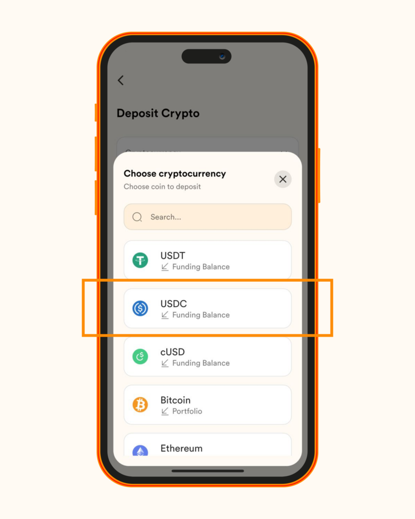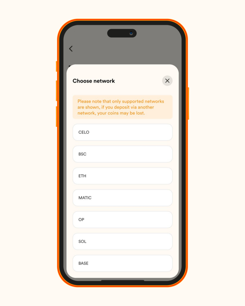 You’ll be shown the supported networks available for receiving USDC. Pick the network you want to use.